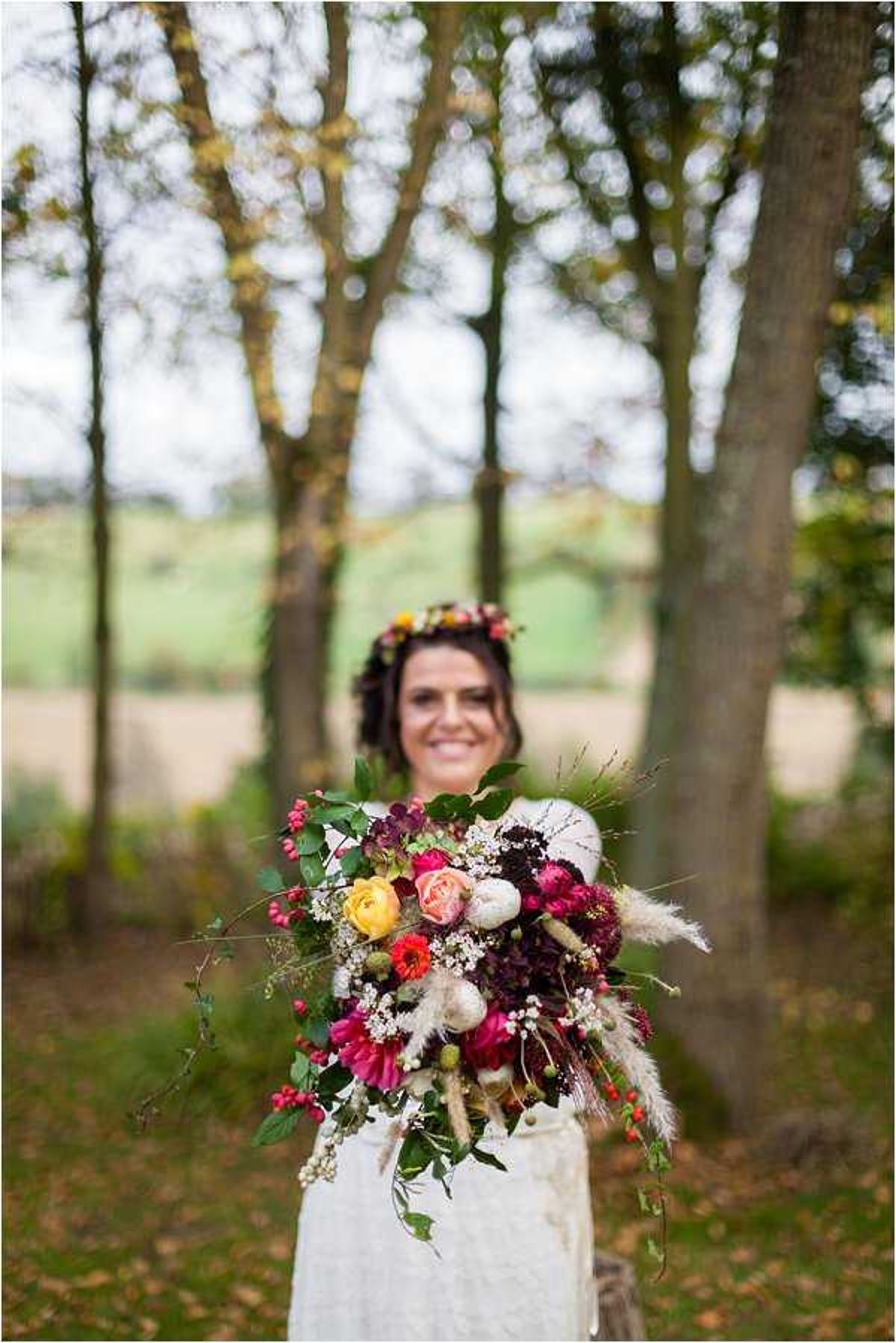 Fit for a pretty countryside wedding is this bouquet created by Brin De Paille …..