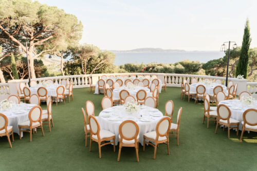 The venue is just 5 minutes from Toulon-Hyères Airport, making it one of the most easily accessible wedding venues on the French Riviera. Guests can also arrive via Marseille or Nice airports, both within 1–1.5 hours by car.