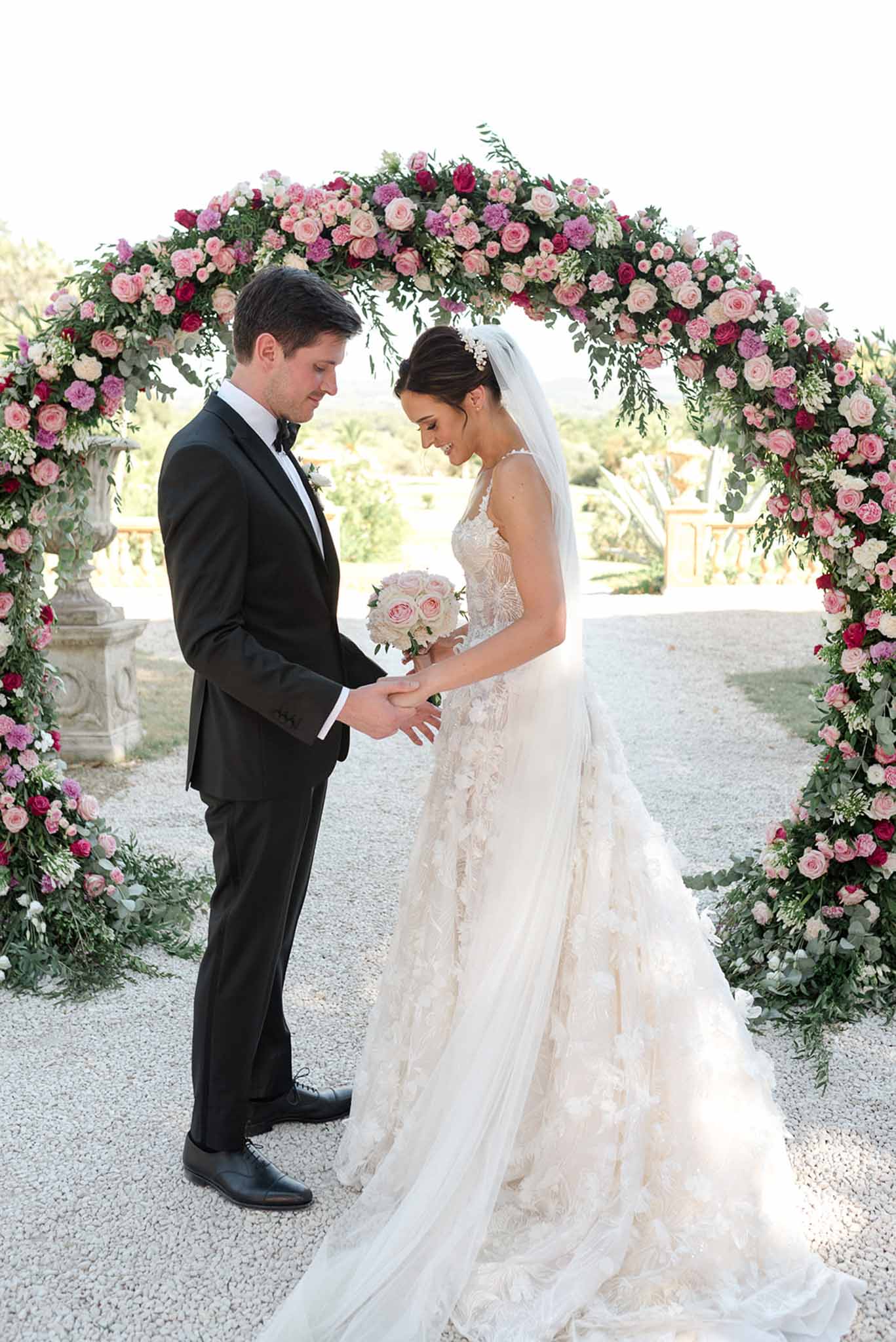 Alexandra and Max’s wedding at Château de Robernier, an iconic fairytale Provencal castle was a perfect mix of tradition and modern style, all set in the heart of Provence. The couple, who first crossed paths at Oxford before settling in London, picked this stunning venue for its history, beauty, and that special French charm that means so much to them. Their love for France was woven into every detail of the day. Guests watched the two say “I do” in the sun-drenched gardens, surrounded by sweeping views of the Provençal countryside. The reception that followed was pure magic—light pouring into every room, gorgeous gardens just outside, and a warm, inviting atmosphere that felt both relaxed and grand. Dinner at this beautful Provencal wedding estate surrounded by acres of vineyards was served beneath the twinkling lights, where the warm Provençal skies provided a picturesque setting for an unforgettable celebration.