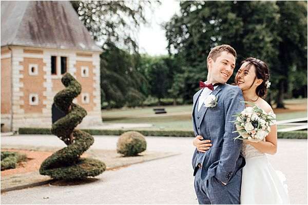 Elena Decaen captured Chen and Quentin exploring the Normandy countryside, their laughter and ease translating effortlessly into every frame. Soft afternoon light played across garden paths and stone walls as the couple shared quiet moments between the celebrations. The portraits balanced intimacy with the gentle grandeur of the French landscape.