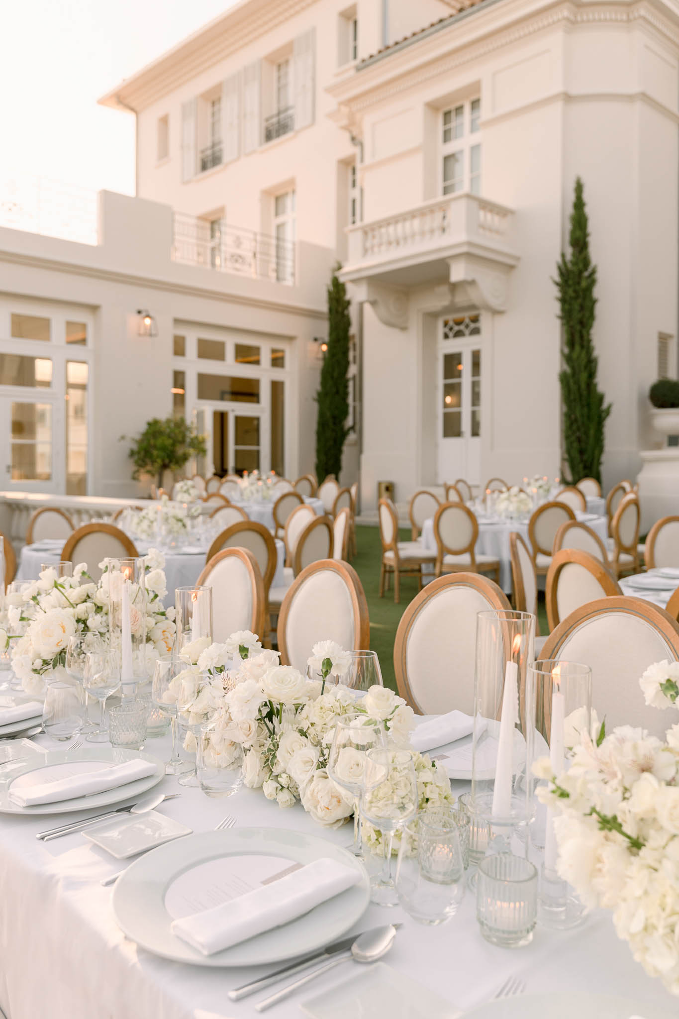 The venue can accommodate up to 300 guests, making it ideal for large celebrations. Dinner is typically hosted al fresco on the main terrace or inside the salons, while the glass-roofed Art Deco gallery is used for evening dancing.